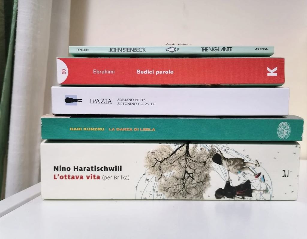 Anche a settembre ho viaggiato parecchio. Sono stata nella Salinas Valley con “The Vigilante“, di J. Steinbeck (SÌÌÌ); in Iran e in Germania con “Sedici parole“, di N. Ebrahimi (SÌÌÌÌ); ad Alessandria d’Egitto con “Ipazia“, di A. Petta e A. Colavito (SÌÌÌ); in India e negli States con “La danza di Leela“, di H. Kunzru (SÌÌÌ); a Tbilisi, in Georgia, e a Londra con “L’ottava vita“, di N. Haratischwili (SÌÌÌÌÌÌ).